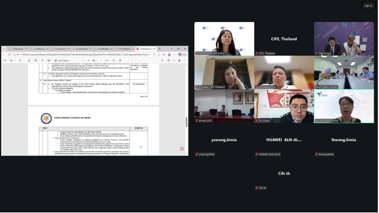 เมื่อวันที่ 7 เมษายน พ.ศ. 2569 สถาบันนิติวิทยาศาสตร์เข้าร่วมการประชุมคณะกรรมการบริหารเครือข่ายนิติวิทยาศาสตร์แห่งภูมิภาคเอเชีย (AFSN Board Members Meeting) ครั้งที่ 1/2569