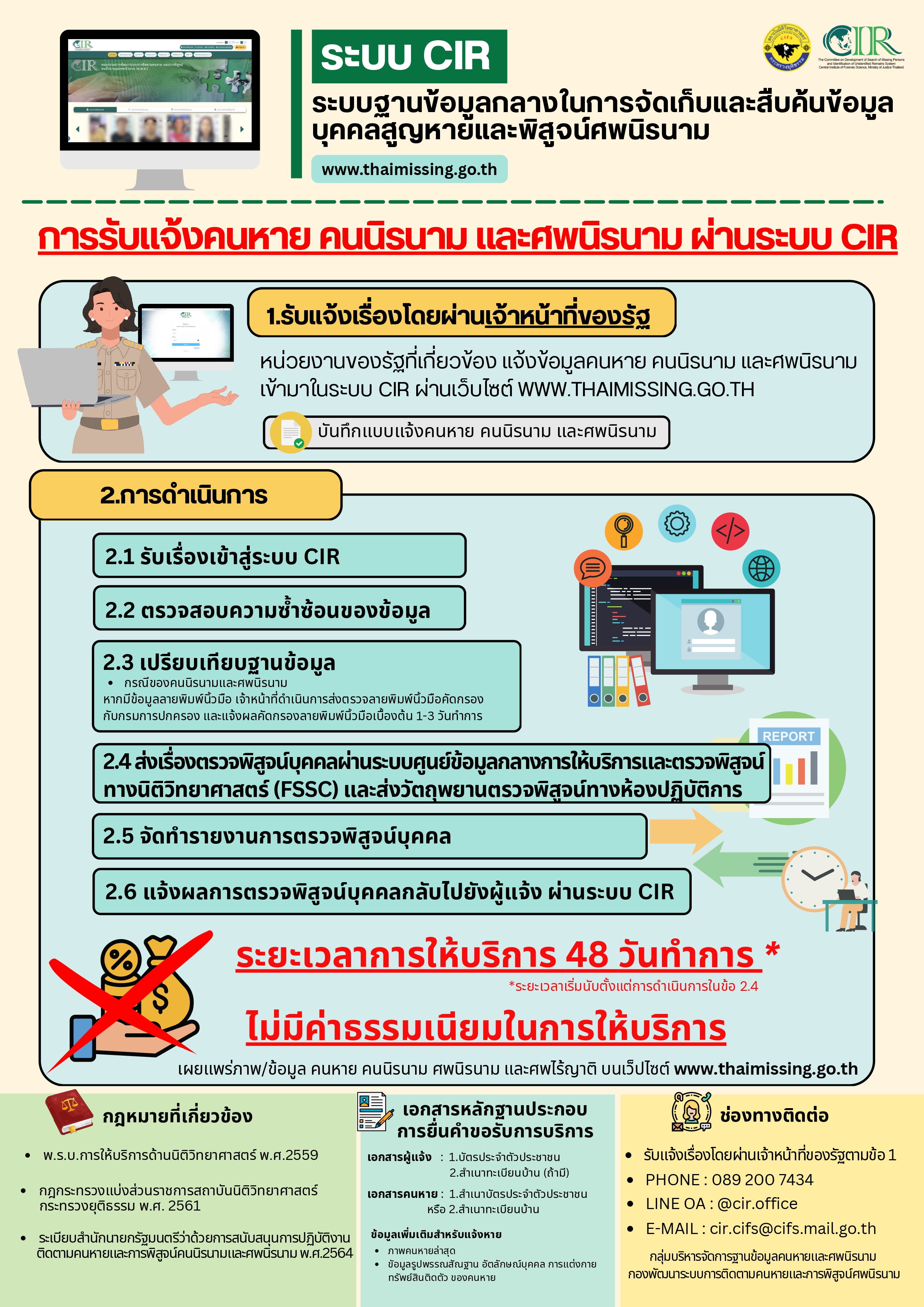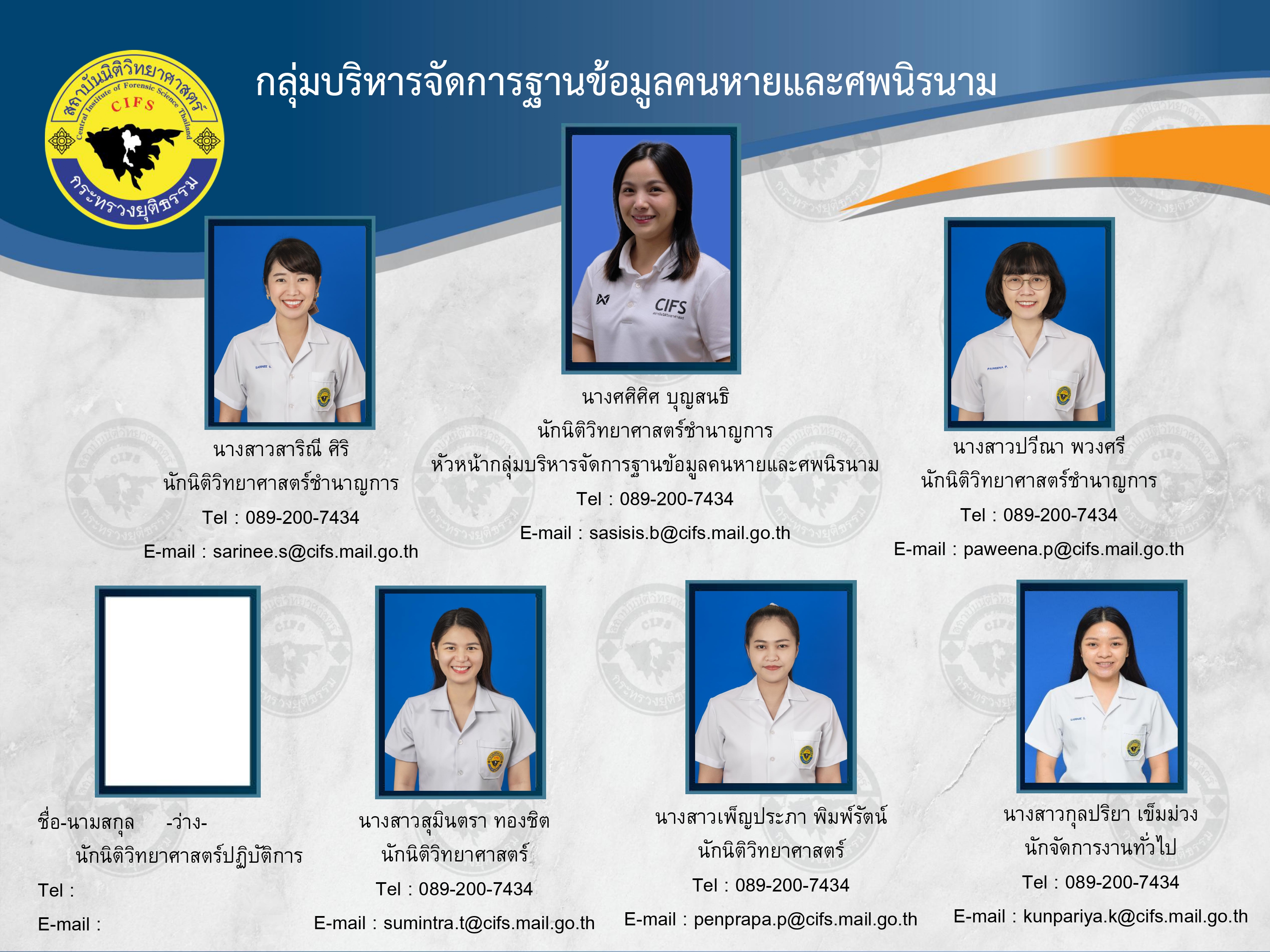 - วิจัยและพัฒนางานติดตามคนหาย และพิสูจน์คนนิรนามและศพนิรนาม