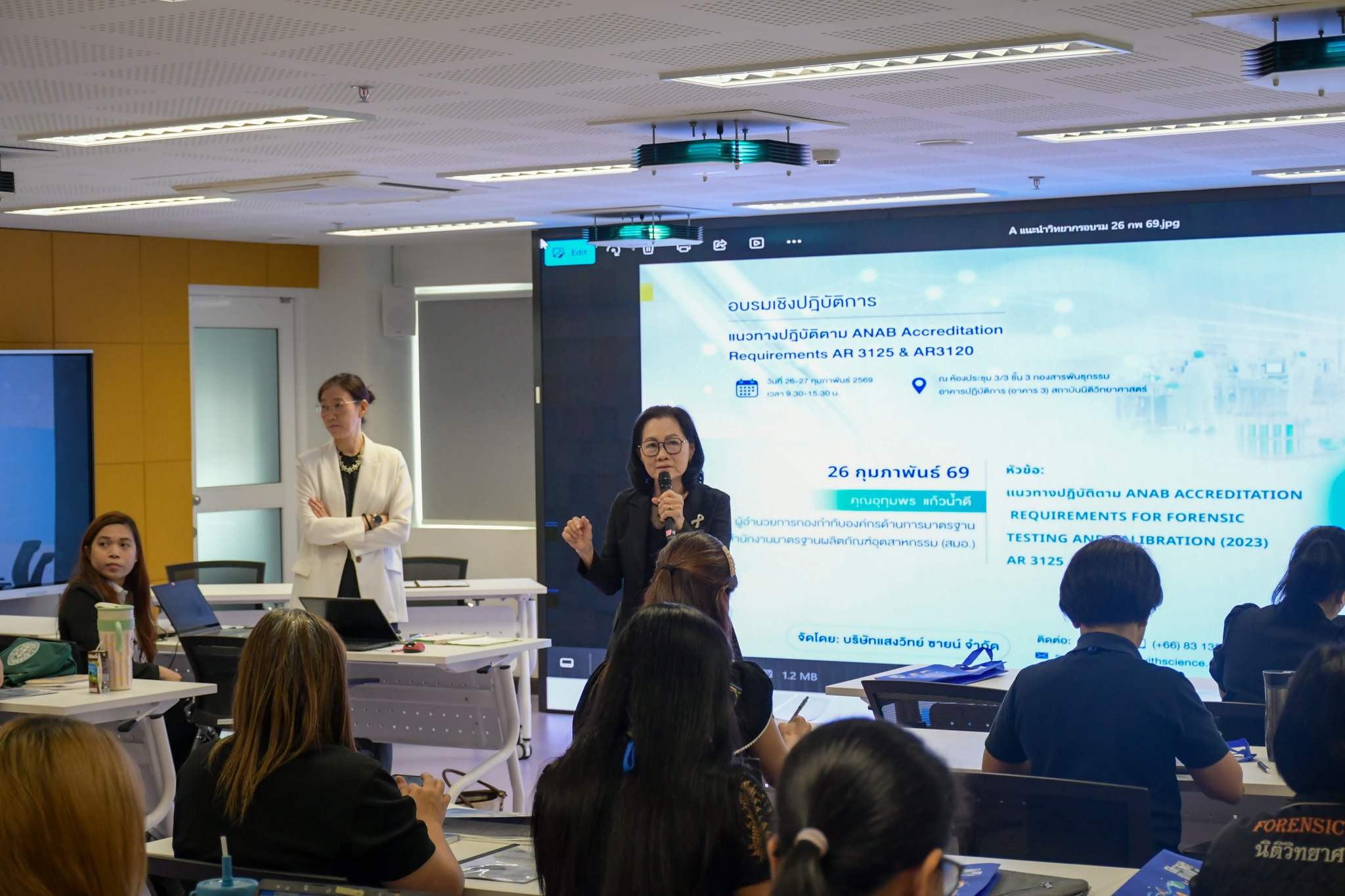 <p dir="auto" style="">วันที่ 26 กุมภาพันธ์ 2569 ทันตแพทย์หญิงจุฑารัตน์ จินตกานนท์ รองผู้อำนวยการสถาบันนิติวิทยาศาสตร์ เป็นประธานเปิดกิจกรรมการแลกเปลี่ยนเรียนรู้เพื่อเตรียมความพร้อมขอการรับรองระบบมาตรฐานสากลจากหน่วยรับรอง ANAB ประเทศสหรัฐอเมริกา หัวข้อ“แนวทางปฏิบัติตาม ANAB Accreditation Requirements AR 3125 and AR 3120” โดยมีผู้บริหาร ผู้อำนวยการกอง ผู้เชี่ยวชาญหัวหน้ากลุ่ม และเจ้าหน้าที่ด้านนิติวิทยาศาสตร์ที่เกี่ยวข้อง เข้าร่วมกิจกรรมฯ ณ ห้องประชุม 2/7ก อาคารสำนักงาน สถาบันนิติวิทยาศาสตร์ จังหวัดปทุมธานี เพื่อเสริมสร้างความรู้ ความเข้าใจการนำข้อกำหนดมาตรฐานไปประยุกต์ใช้ สร้างความมั่นใจให้กับบุคลากรที่เข้ารับการตรวจประเมินจาก ANAB กำหนดวันที่ 13-17 กรกฎาคม 2569 ในขอบข่ายที่ขอการรับรองจำนวน 5 หน่วยงาน รวมทั้งสิ้น 8 ขอบข่าย </p><p dir="auto" style=""> กิจกรรมในครั้งนี้ฯ จัดขึ้นระหว่างวันที่ 26-27 กุมภาพันธ์ 2569 โดยเป็นการแลกเปลี่ยนเรียนรู้เชิงลึกในลักษณะถาม-ตอบ ตรงประเด็นเน้นสิ่งที่สำคัญ เพื่อสนับสนุนการดำเนินงานการขอการรับรองระบบมาตรฐานสากลจากหน่วยรับรอง ANAB ภายในปีงบประมาณ พ.ศ.2569 โดยสถาบันนิติวิทยาศาสตร์ได้รับเกียรติจากอาจารย์อุทุมพร แก้วน้ำดี และอาจารย์ธาริณี คล้ำจุ้ย สำนักงานมาตรฐานผลิตภัณฑ์อุตสาหกรรม เป็นวิทยากร โดยมี บริษัท แสงวิทย์ ซายน์ จำกัด เป็นผู้ประสานงานและอำนวยความสะดวกในการจัดกิจกรรมการแลกเปลี่ยนเรียนรู้ในครั้งนี้</p>