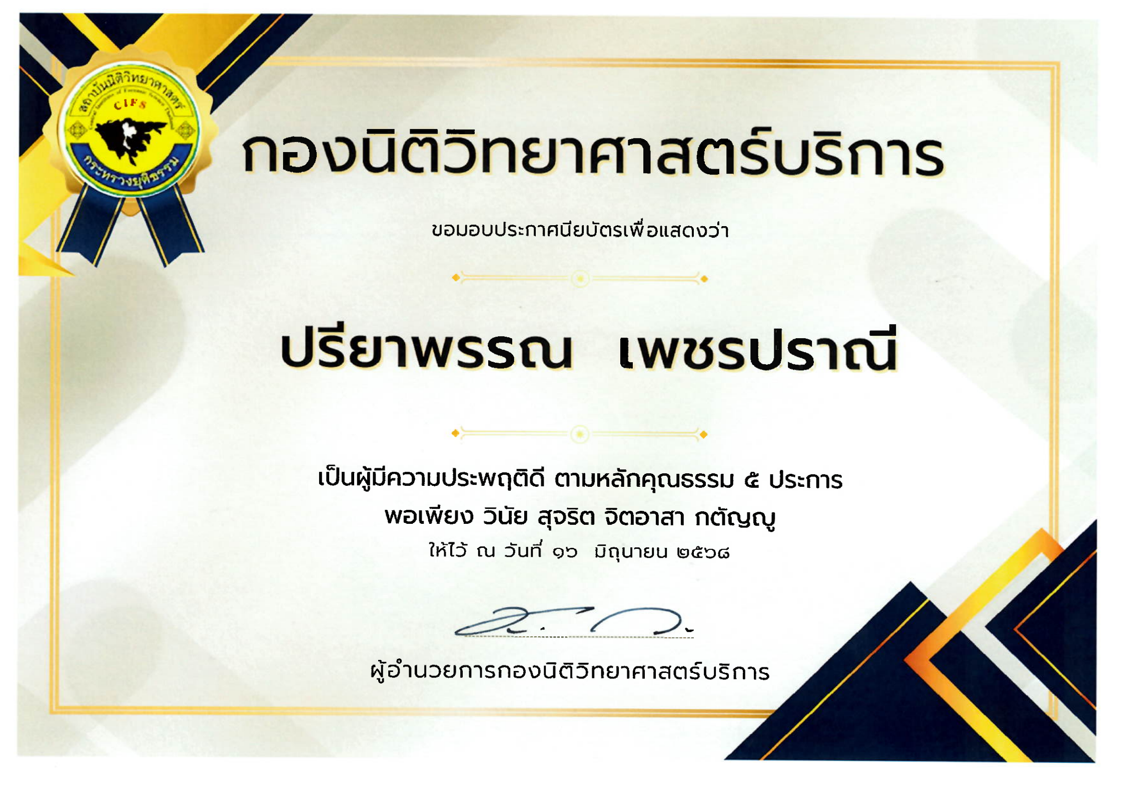 กองนิติวิทยาศาสตร์บริการ ขอมอบประกาศนียบัตรให้ กลุ่มตรวจพิสูจน์ทางเคมี และ แพทย์หญิงปรียาพรรณ เพชรปราณี