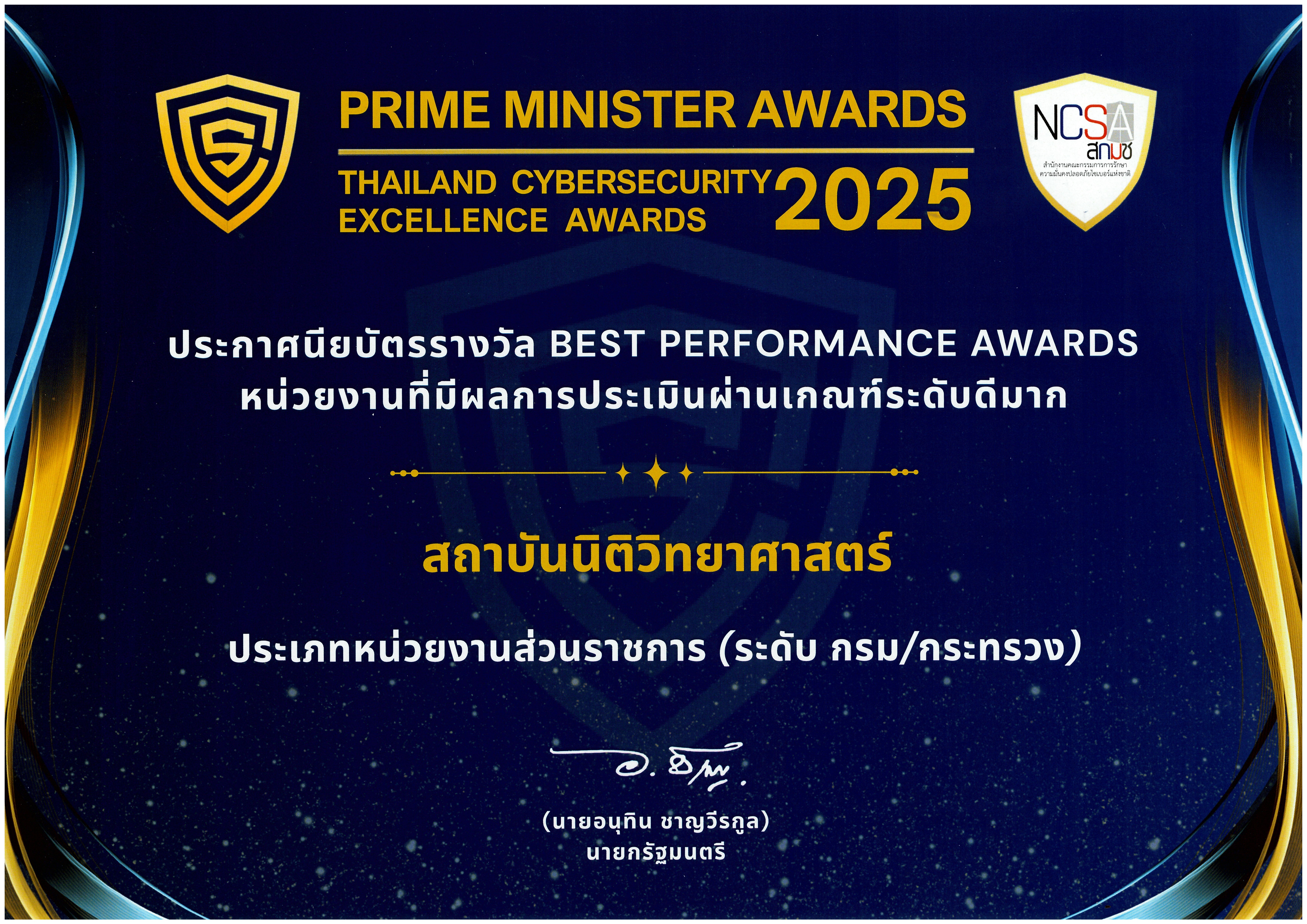 รางวัล BEST PERFORMANCE AWARDS หน่วยงานที่มีผลการประเมินผ่านเกณฑ์ระดับดีมาก
